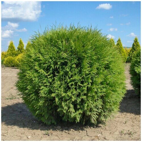 Карликовая форма с шаровидной или слегка приплюснутой кроной. В молодом возрасте имеет идеально круглую форму, с годами становится более рыхлой и широкой, достигая высоты и диаметра около 1–1,5 м. Хвоя светло-зеленая, блестящая, зимой приобретает серо-зеленый или буроватый оттенок. Растет быстро. Благодаря своей форме и неприхотливости широко используется в одиночных и групповых посадках, для озеленения каменистых садов и создания невысоких живых изгородей.